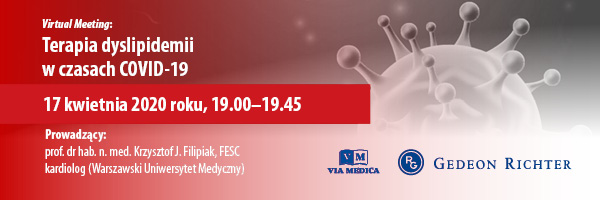 Virtual Meeting "Terapia dyslipidemii w czasach COVID-19" dedykowany jest  lekarzom, zajmującym się na co dzień opieką nad pacjentami z dyslipidemią,  którym przyszło mierzyć się z tym zaburzeniem w czasach COVID-19.  To szkolenie online, prowadzone przez wybitnego  eksperta z zakresu kardiologii — prof. dr hab. n. med. Krzysztofa J. Filipiaka, FESC z Warszawskiego Uniwersytetu Medycznego, którego wiedza i doświadczenie mogą być wsparciem w praktyce lekarskiej w najbliższym, trudnym czasie.
